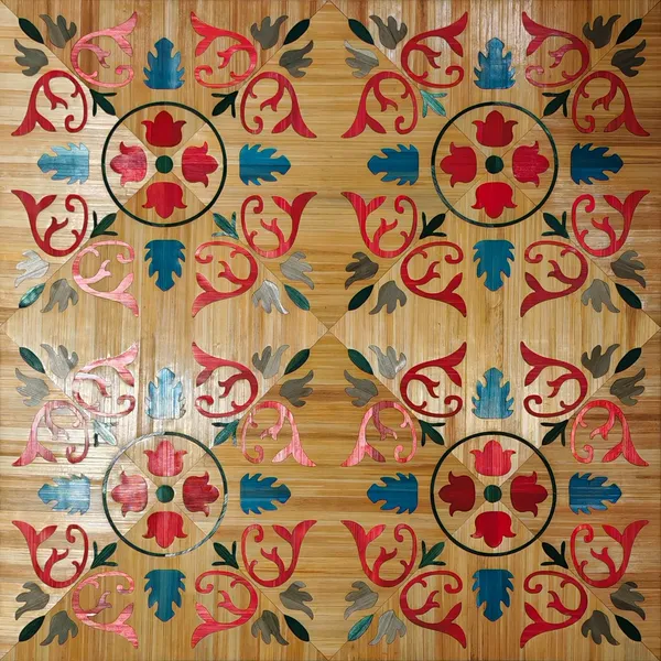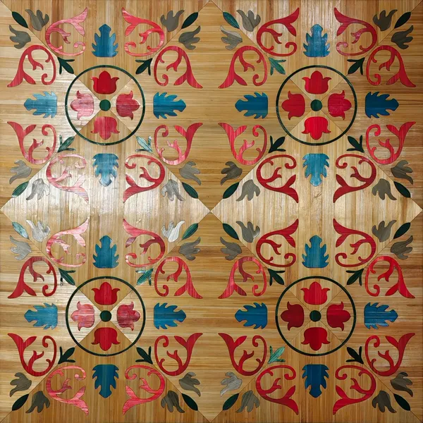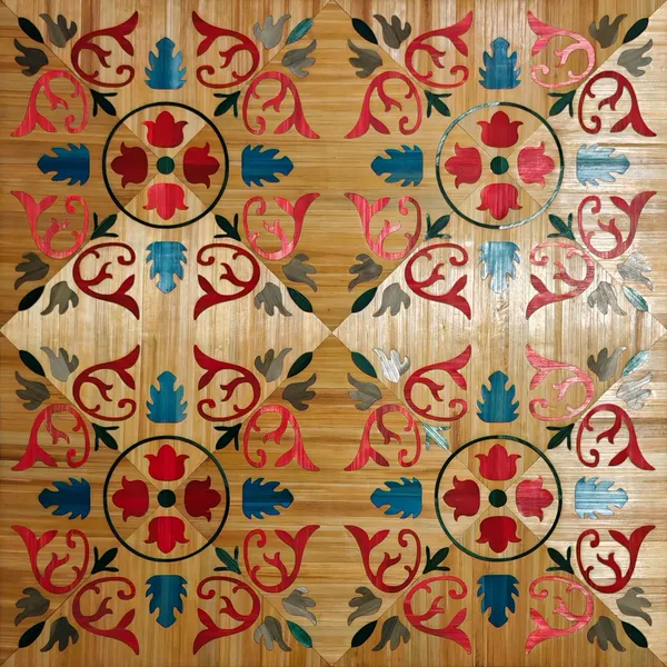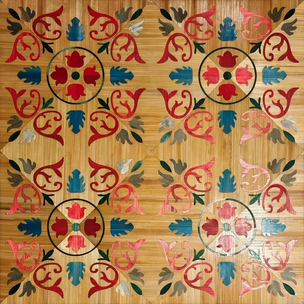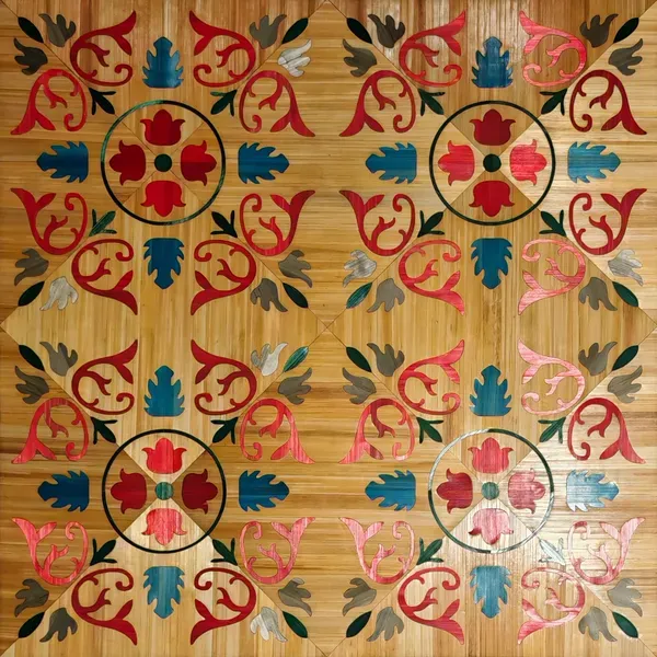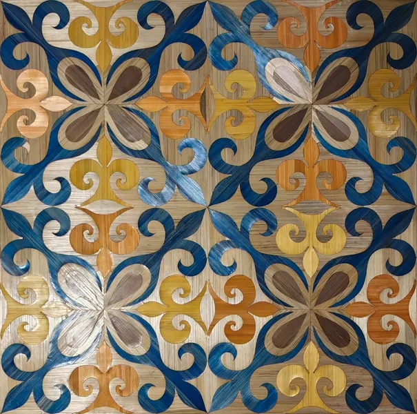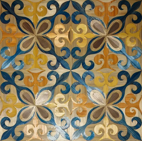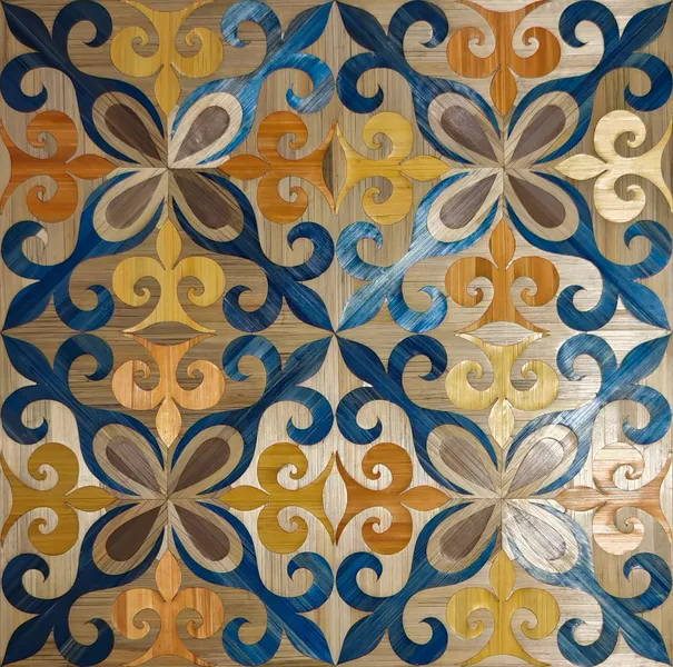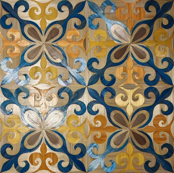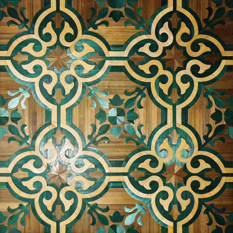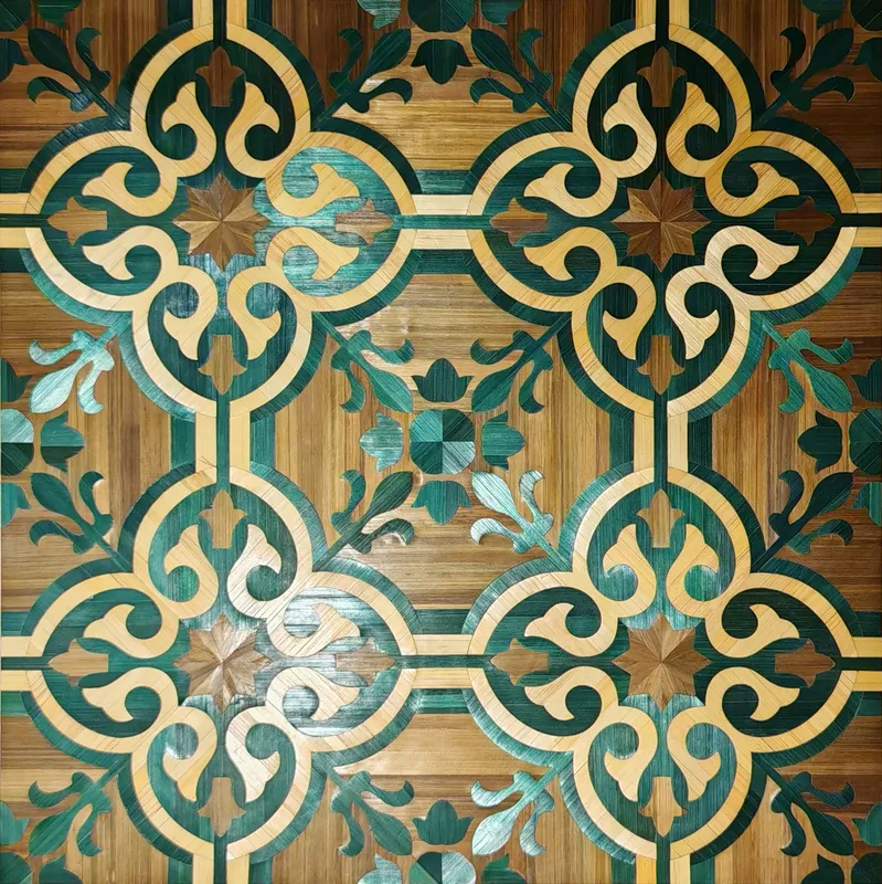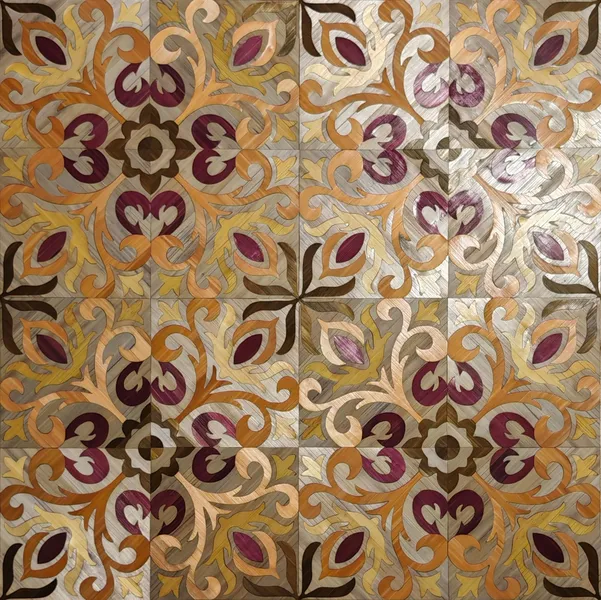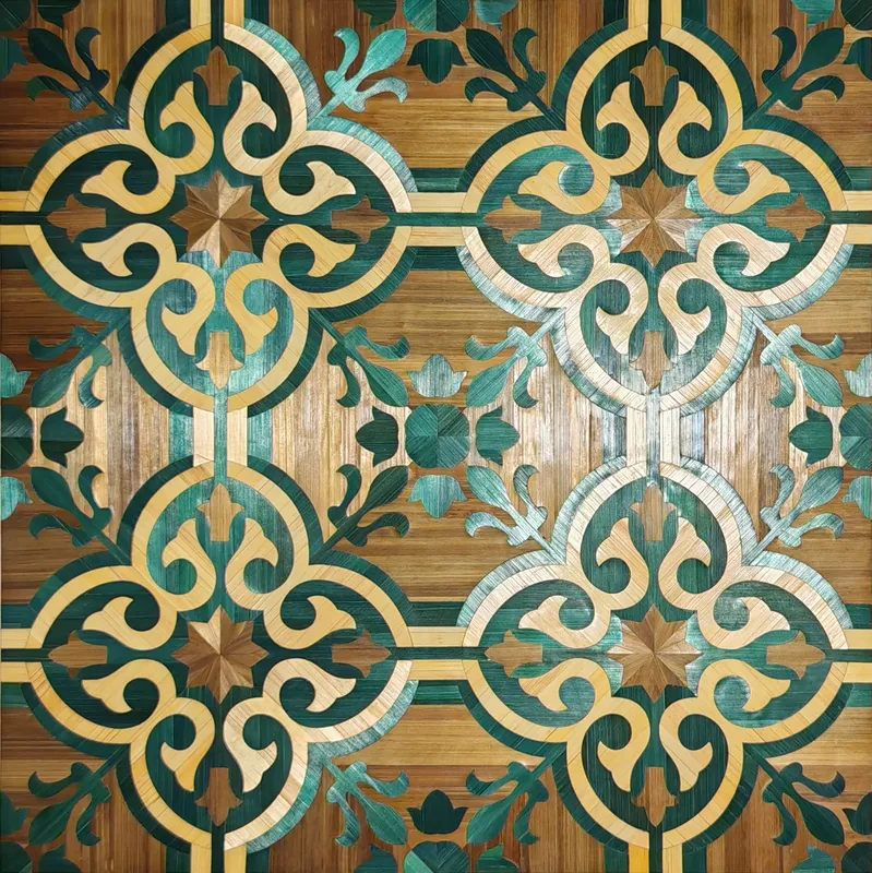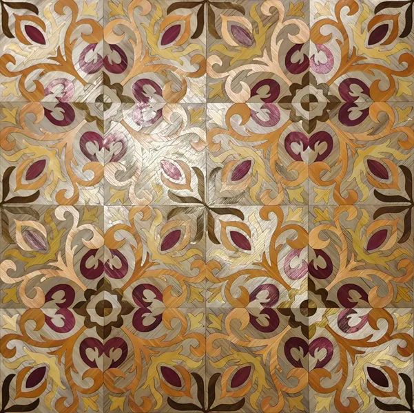 Proposés en tableaux et comme décoration sur mesure, cette série réinvente les carreaux ciment traditionnels en marqueterie de paille.