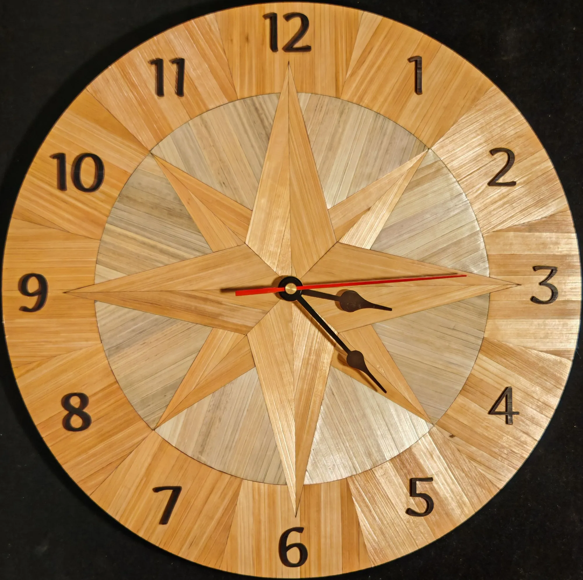 Les horloges sont entièrement plaquées en marqueterie de paille. Les chiffres resortent.