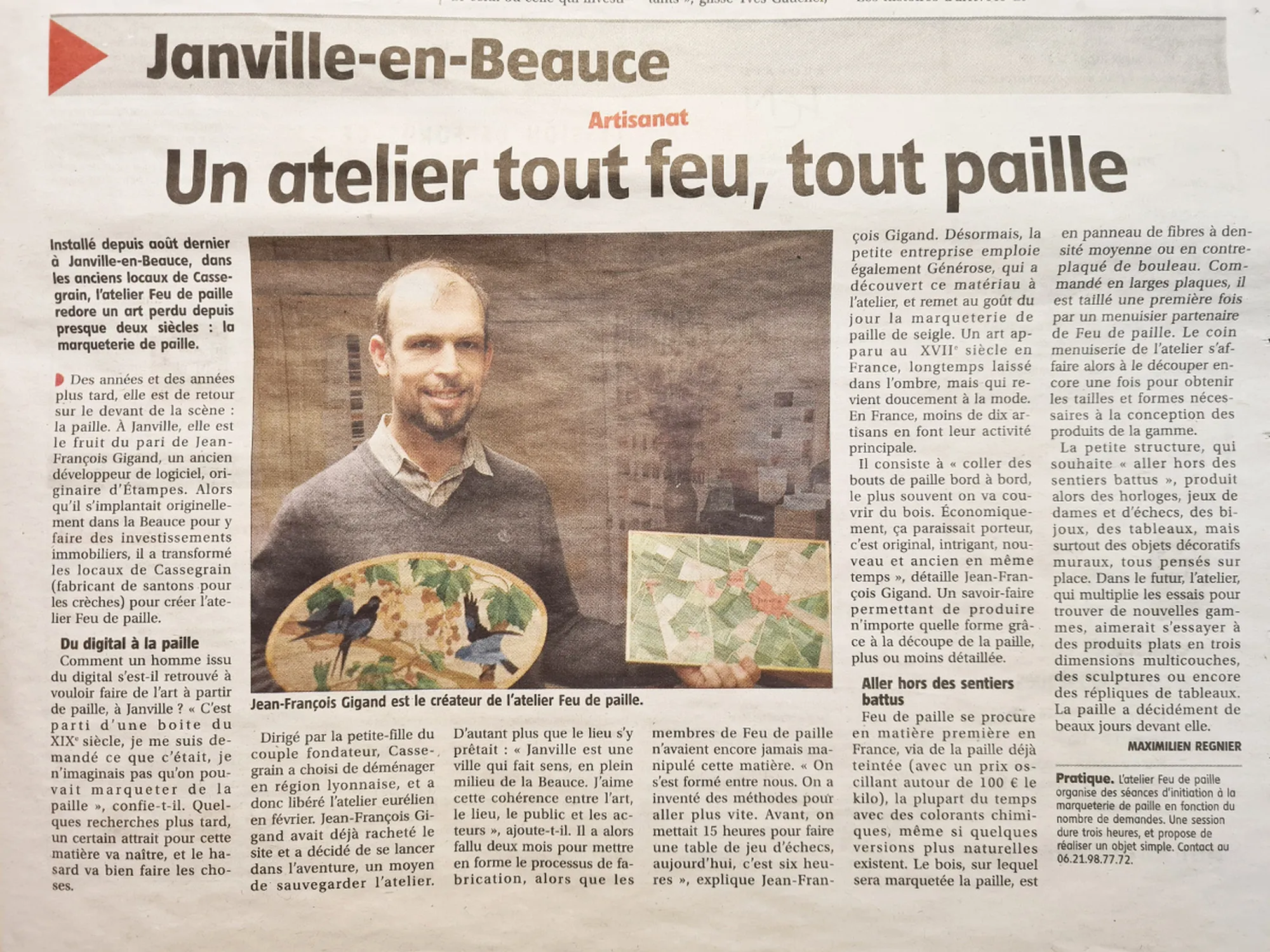 Nos locaux étaient la propriété de l'atelier Cassegrain jusqu'en 2021, qui y fabriquait des santons depuis 1943 ainsi que des peintures et céramiques. C'est à l'œuvre de Jacques et Geneviève Cassegrain (aujourd'hui décédés) qu'on doit l'idée et la vocation de la marqueterie de paille.