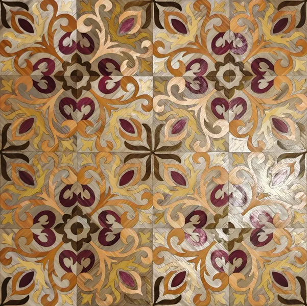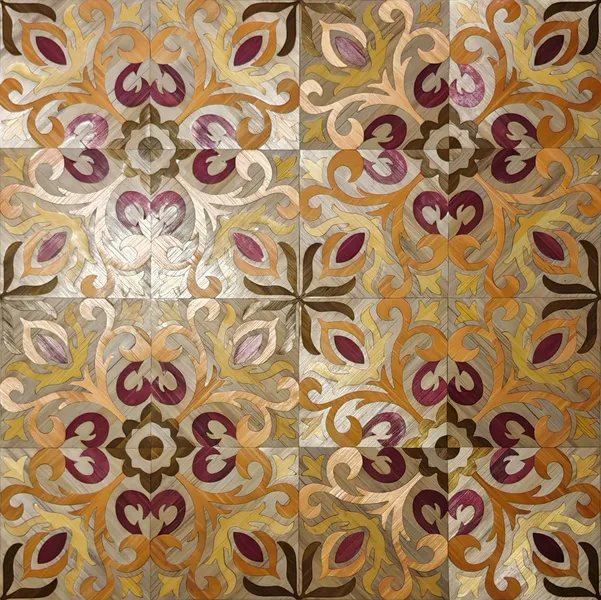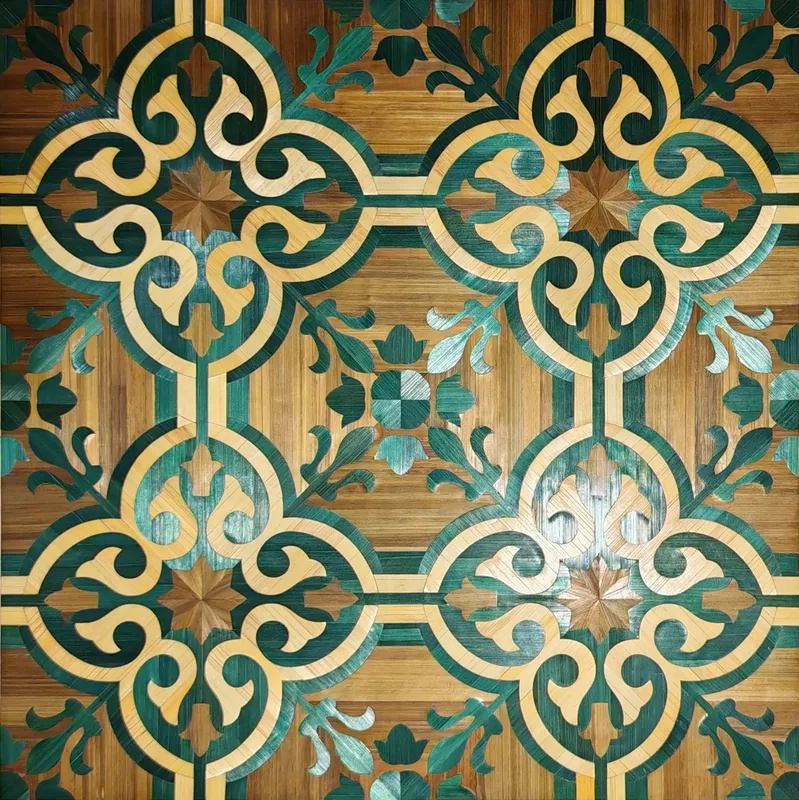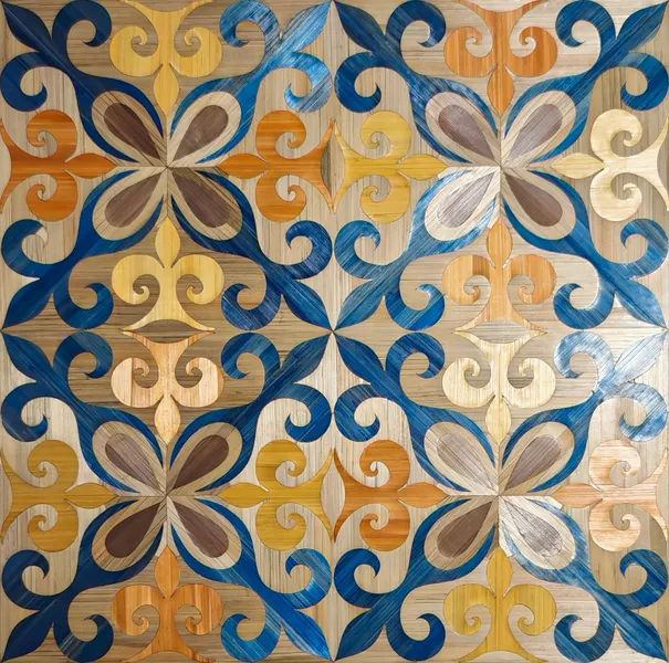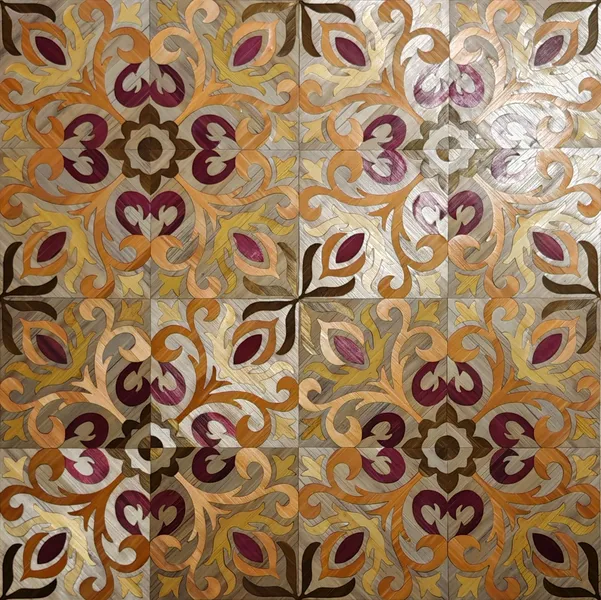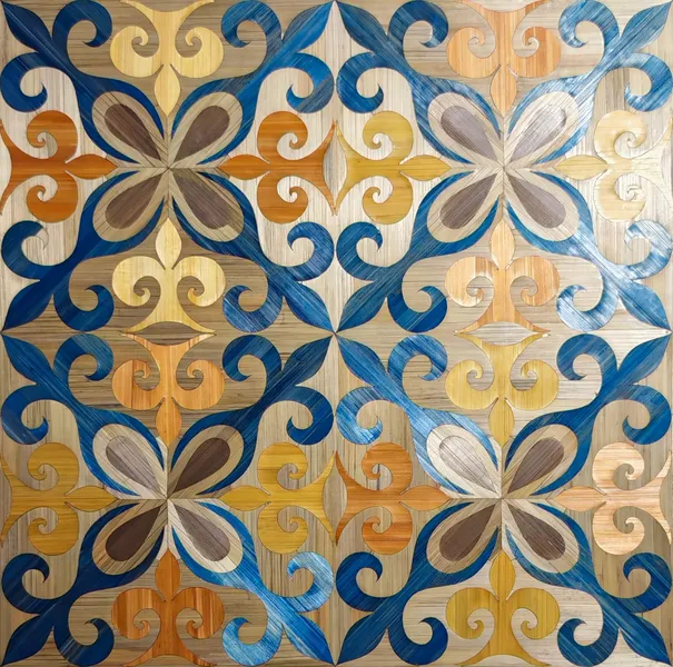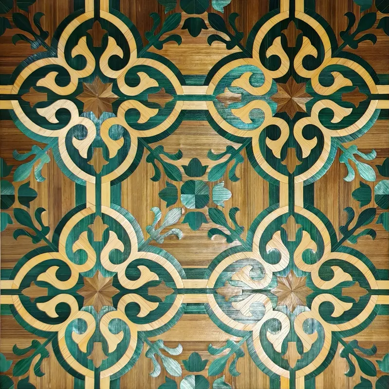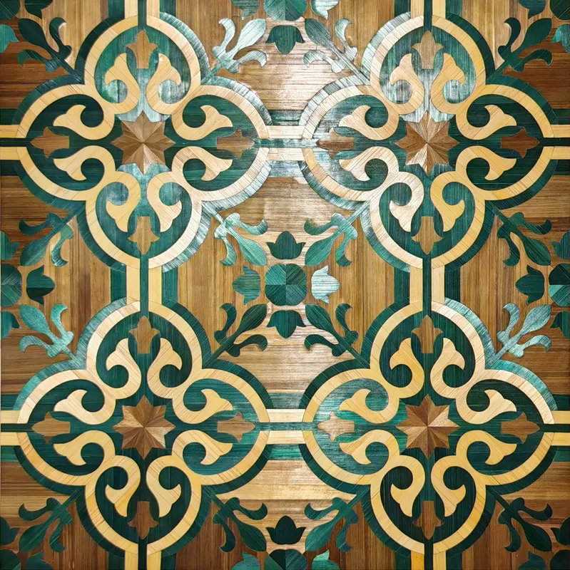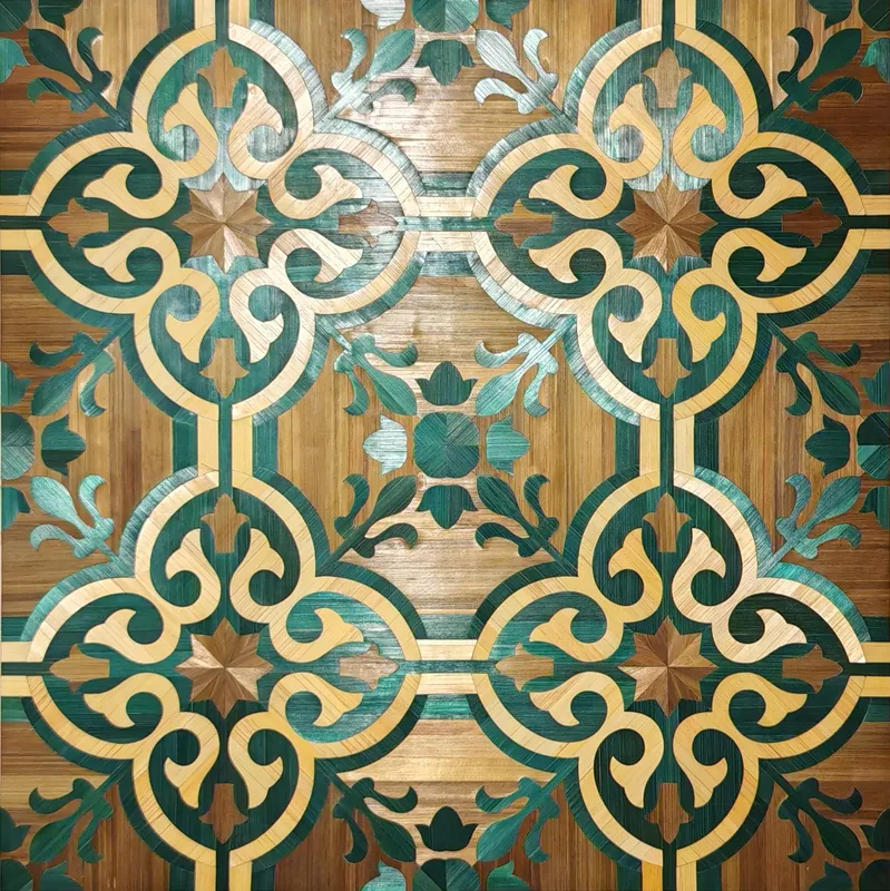 Proposés en tableaux et comme décoration sur mesure, cette série réinvente les carreaux ciment traditionnels en marqueterie de paille.