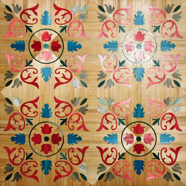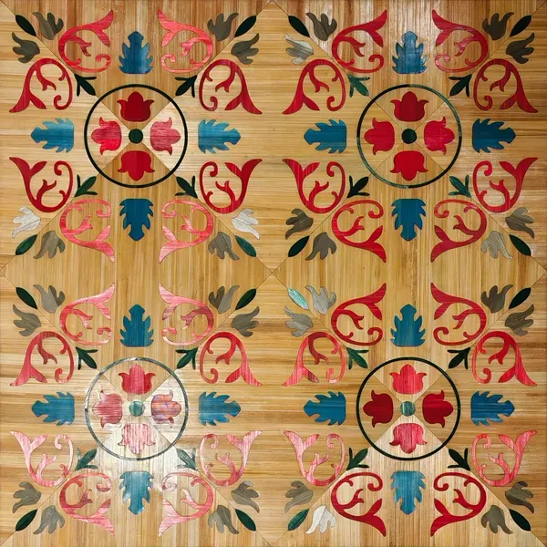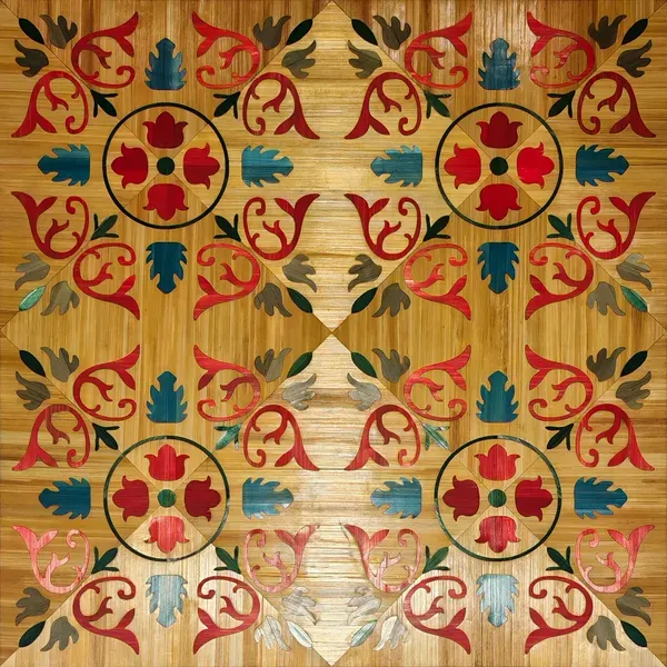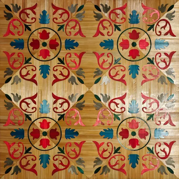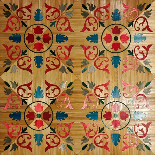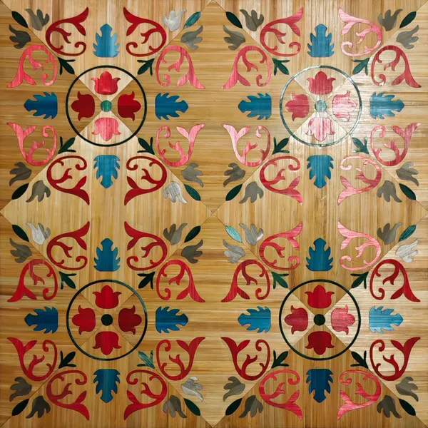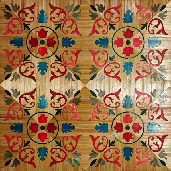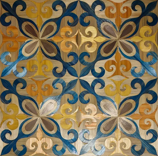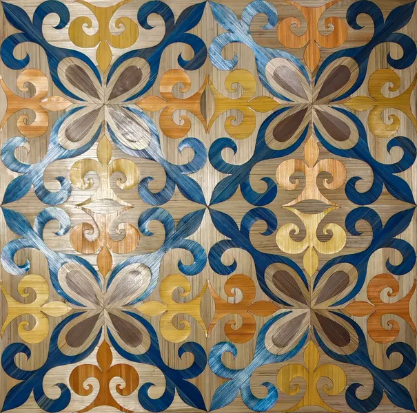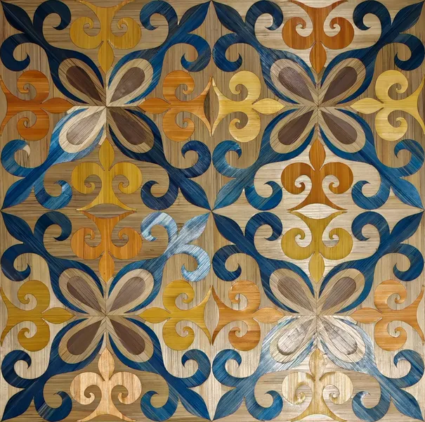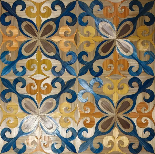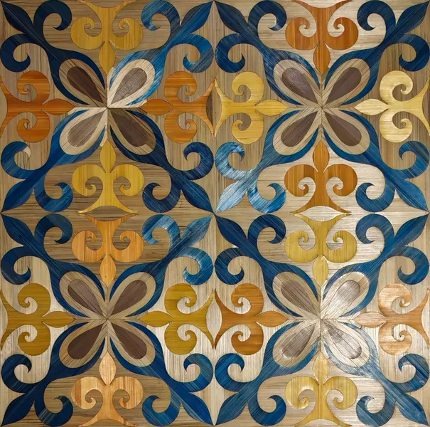 Proposés en tableaux et comme décoration sur mesure, cette série réinvente les carreaux ciment traditionnels en marqueterie de paille.